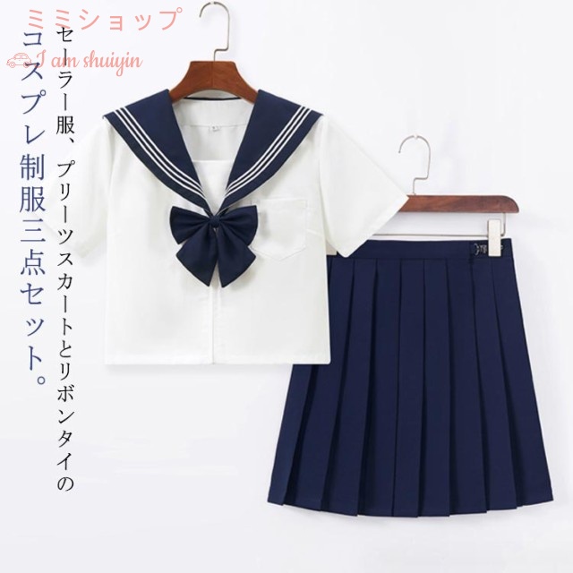 女子制服 レディース 3点セット 半袖 可愛い 女子高校生 リボンタイ セーラー服 高校生 JK制服 セーラー服 セーラー服 コスチューム ショートスカート 上下セット 学院風 衣装 仮装 制服 学生服 長袖 セットアップ 女子制服