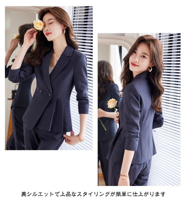 | スーツ おすすめデザインのカラーレスジャケットかっちりしすぎないオフィススタイルの定番スーツ 美シルエットで上品なスタイリングが簡単に仕上がります ウエスト部分はゴム仕様 | |
