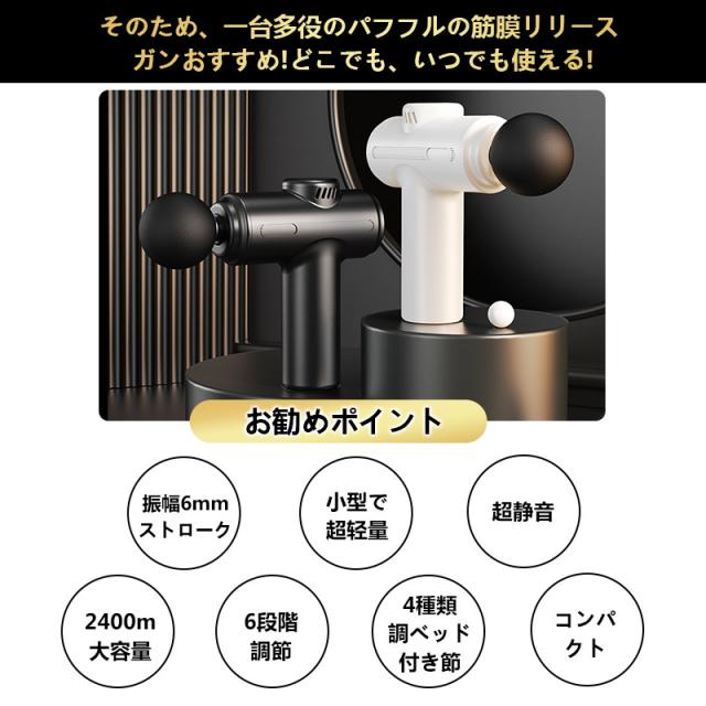 筋膜リリース 電動 高周波マッサージ機 マッサージガン 筋膜銃 USB充電 小型 マッサージ器 6レベル調節可能 低騒音 強力振動 軽量 リラックス