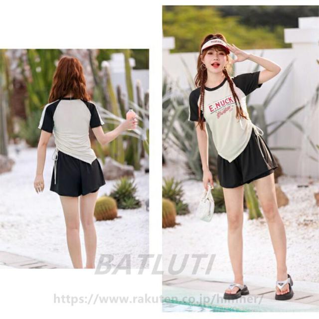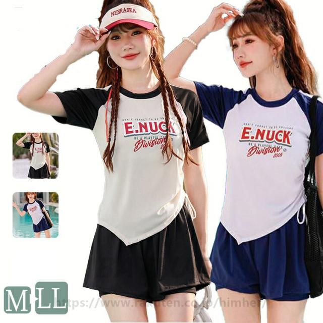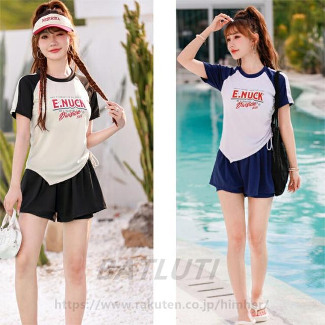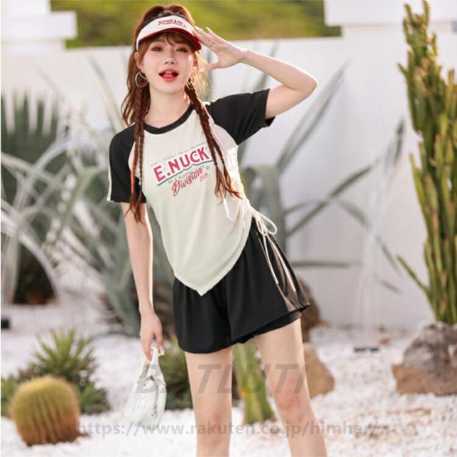 水着 レディース 女子 中学生 2点セット 上下セット 韓国 高校生ファション おしゃれ 学生 スポーツ 女の子 体型カバー 露出控え セット セパレート タンキニ ショートパンツ スポーティー