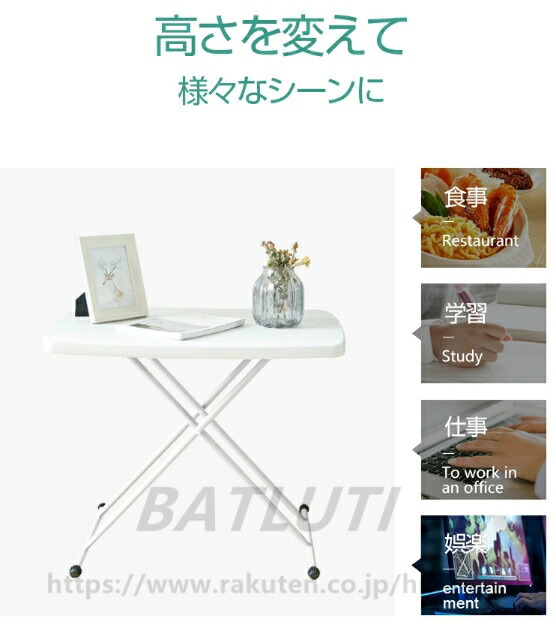●暮らしのスタイルに合わせて、テーブルの高さを簡単に変えられる折りたたみ式昇降テーブルです。