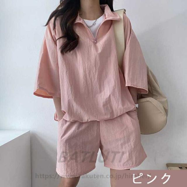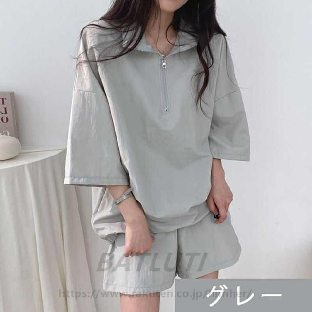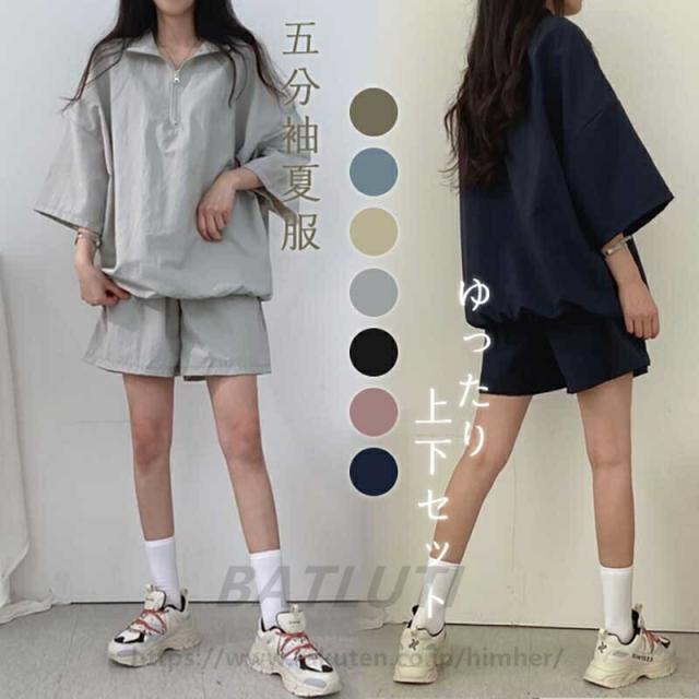 セットアップ レディース 2点セット 五分袖 夏服 かわいい ゆったり 半袖Tシャツ+ショートパンツ トップス パンツ 薄手 シャツ 春夏 無地 可愛い 通学 通勤 おしゃれ 女装 カジ 衣装