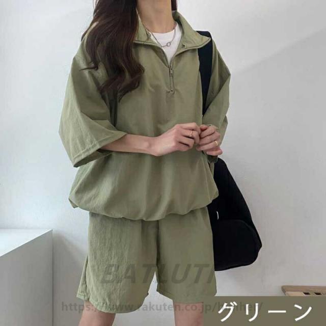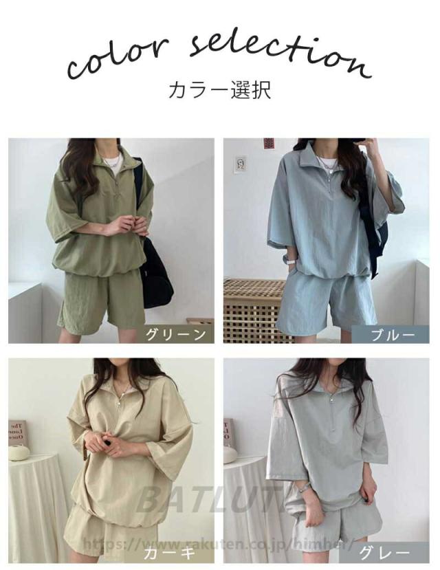 セットアップ レディース 2点セット レディースファッション 特集 グリーン ブルー カーキ グレー ブラック ピンク ネイビー M L XL 2XL 3XL