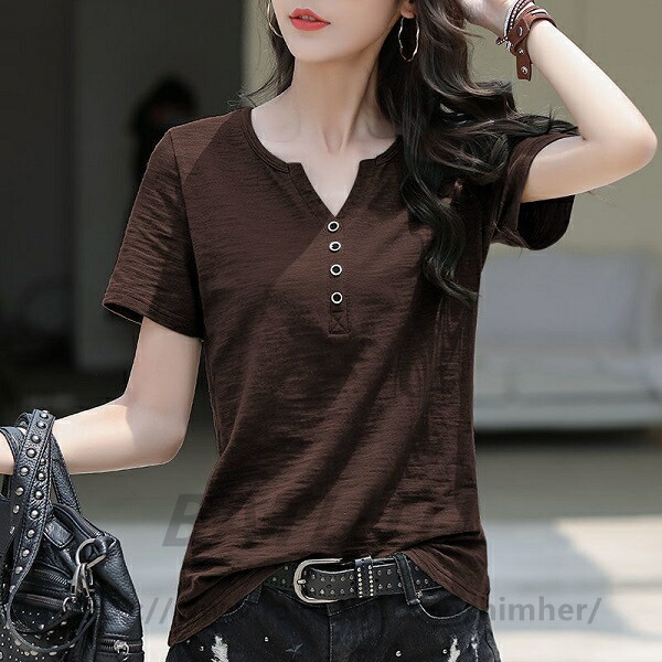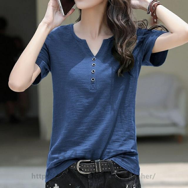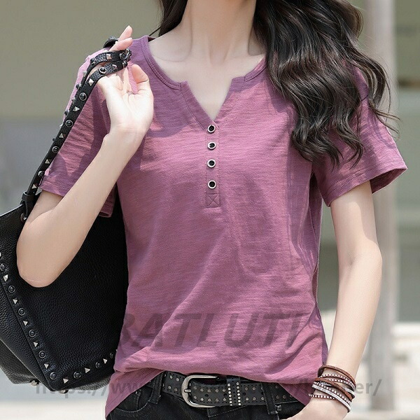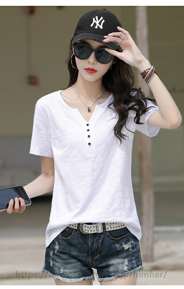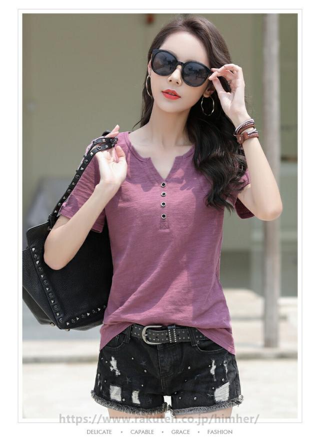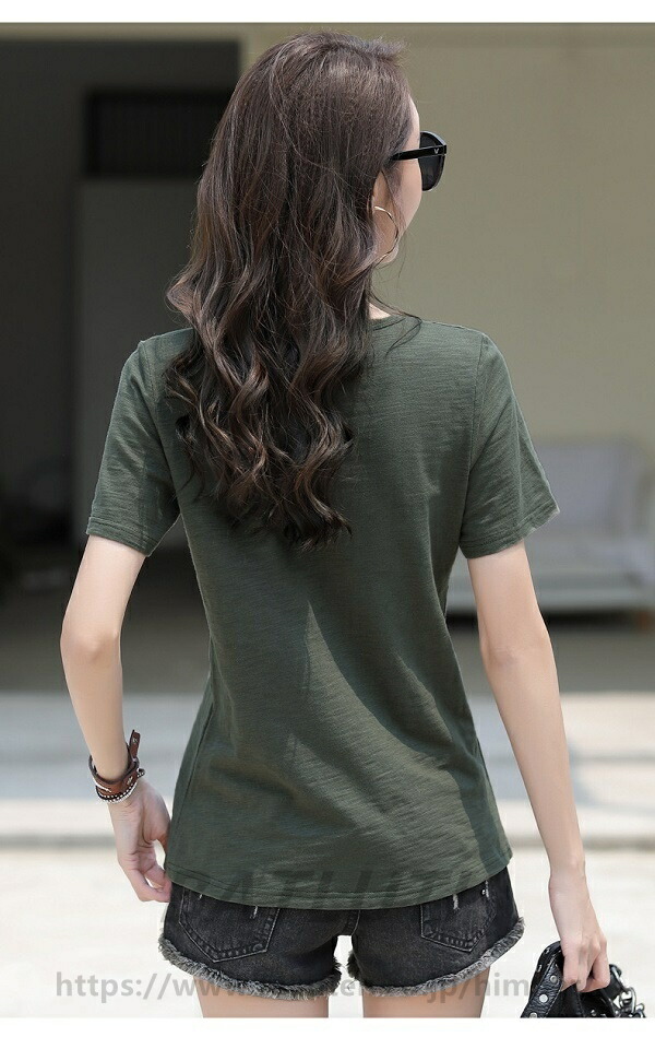 スラブTシャツ 2枚目半額 レディース 綿100% 春 夏 とろみシャツ トップス インナー 美ライン 無地カットソー 無地Tシャツ 半袖Tシャツ シンプルTシャツ コットン 夏服 セレカジ Vネック