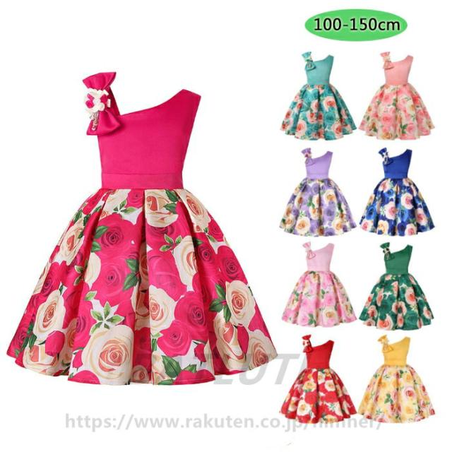 子ども服 女の子 ワンピース 花柄 ノースリーブ フォーマルワドレス 舞台衣装 ステージ衣装 パーティードレス ウエストリボン 可愛い 蝶結び キッズ服 スカート 発表会 サンタコス イ ダンスウェア