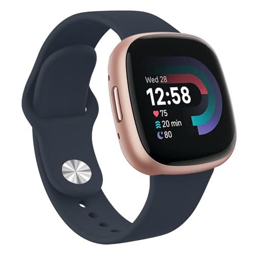 Fitbit Versa4 ベルト Versa3 バンド フィットビットSense / Sense 2 ベルト シリコン 交換バンド交換ベルト 柔らかい シリコンバンド 調節可能 (ミッドナイトブルー Small)