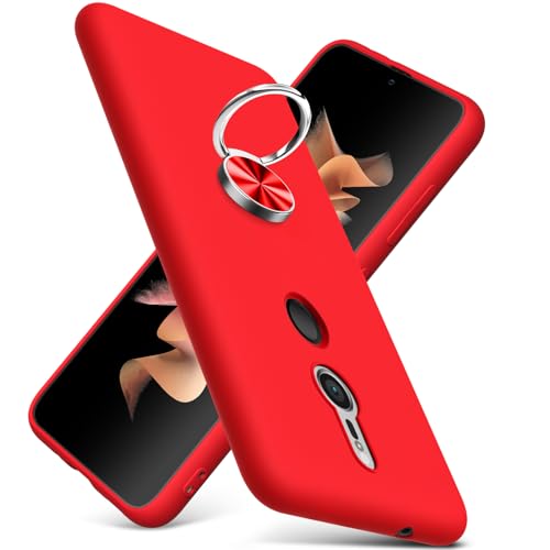 Xperia XZ3 ケース リング 耐衝撃 シリコン SO-01L SOV39 カバー TPU 薄型 リング付き かわいい ストラップホール付き 指紋防止 レンズ保護 磨り表面 指紋防止 擦り傷防止 指紋防止 滑り止め 軽量 黄変防止 脱着簡単 赤