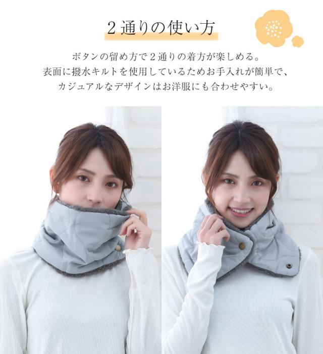 【メール便1枚のみ送料無料】撥水キルト ボタン付きネックウォーマー 無地 キルティング シンプル 大人 レディース 2WAY かわいい おしゃれ【N】【M】
