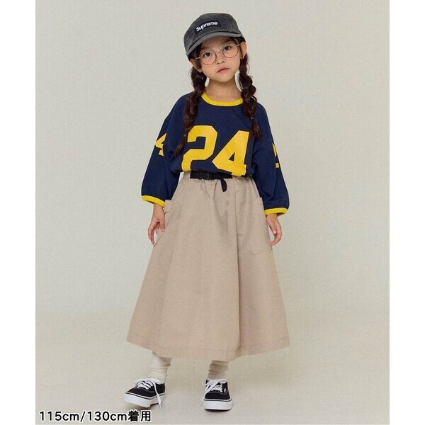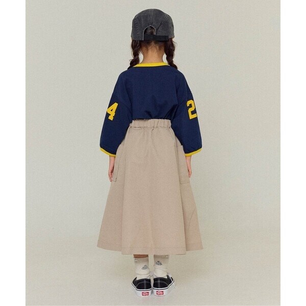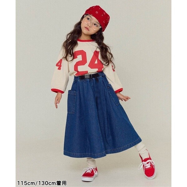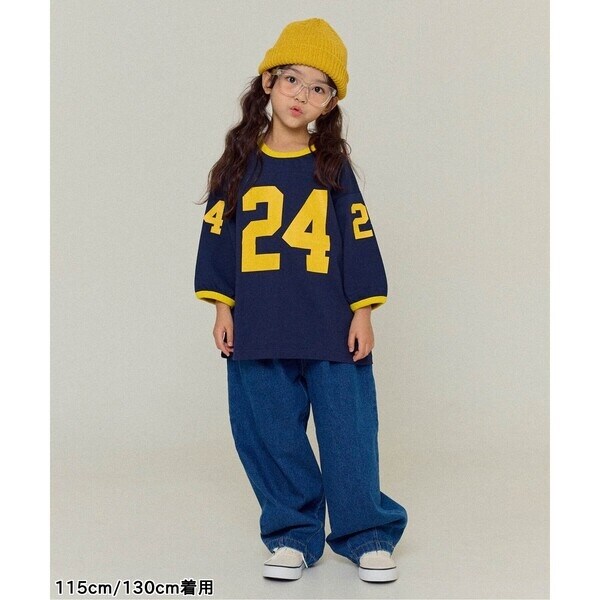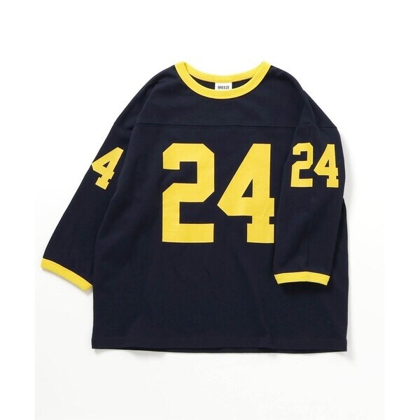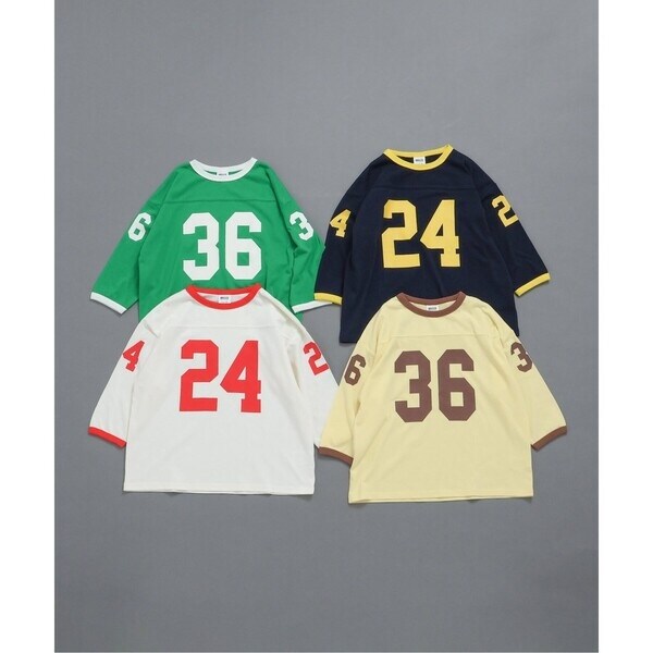 胸元の切り替えデザインが印象的な9分袖フットボールロンT。袖と首元に配色バインダーを施し、シンプルながらもこなれ感のある1枚です。カジュアルなナンバリングプリントが元気な印象に。