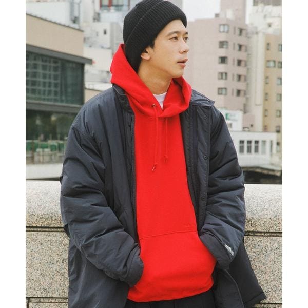 厚手のニットやスウェットの上からでも楽に羽織ることができ、リラックス感のあるシルエット