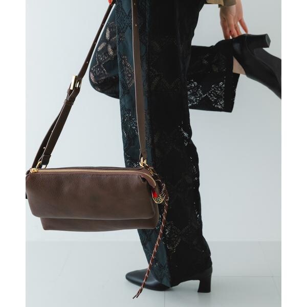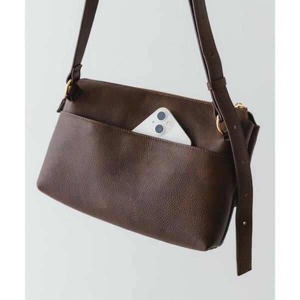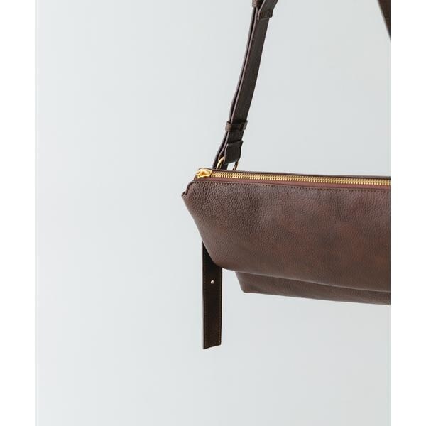 本革を使用したボディバッグ。体に沿うシルエットで持ちやすく、使うほどに革が馴染み風合いが増します。内ポケットや仕切り付きで荷物を細かく整理でき、折り畳み傘や水筒なども収納可能。シンプルなデザインで、キーチャームを付けてアレンジすることもできます。