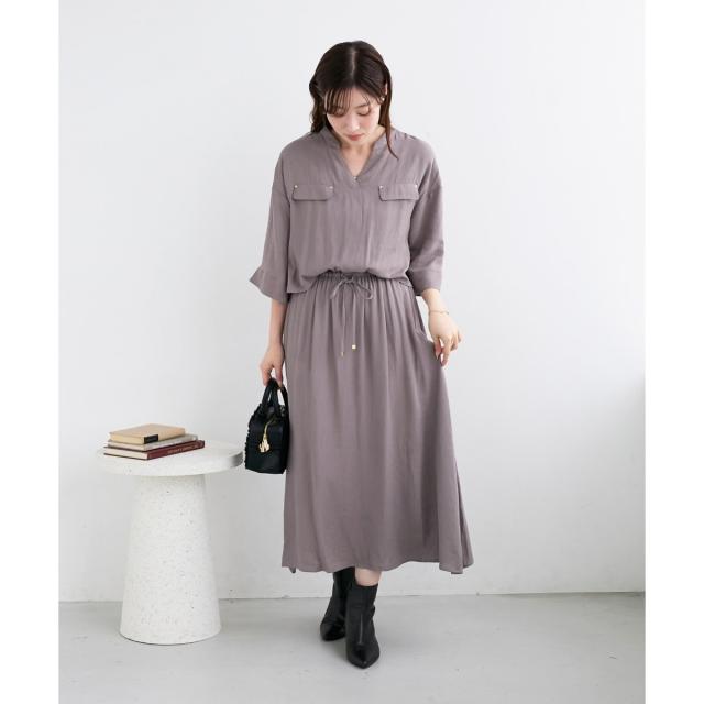 ドライタッチなリネンライク素材で仕立てた、ニュアンスのあるシルエットのワンピース。