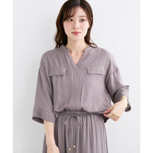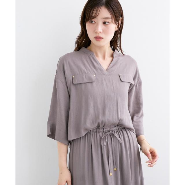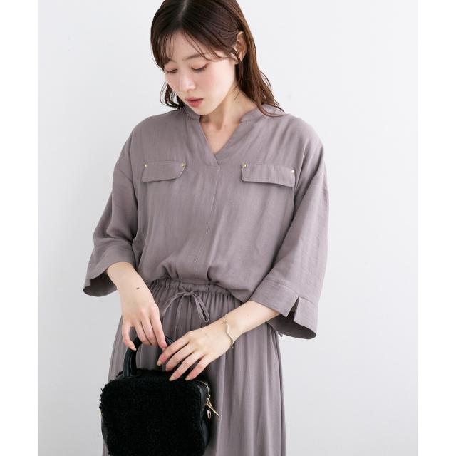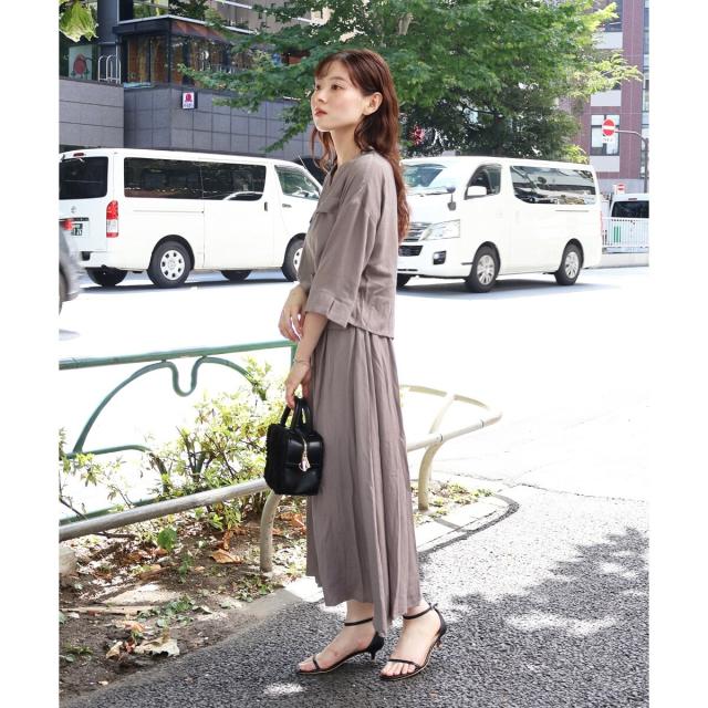 ポリエステルにレーヨンをミックスした素材で、リネンライクな質感はありながら、柔らかく落ち感のある素材感です。