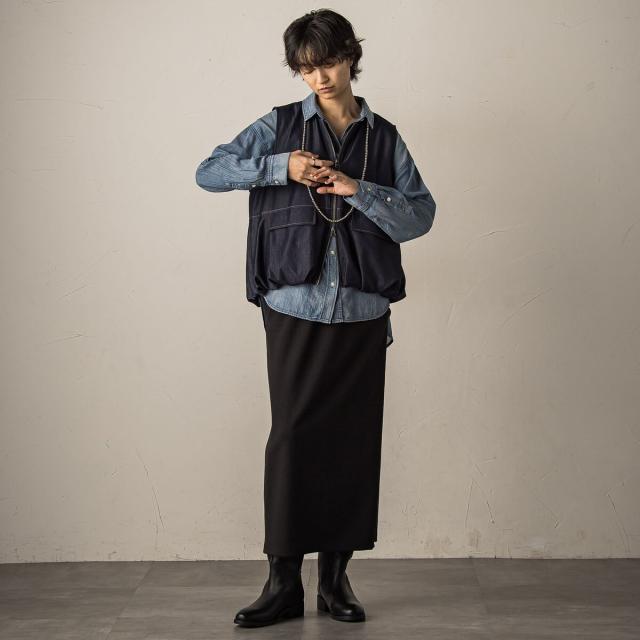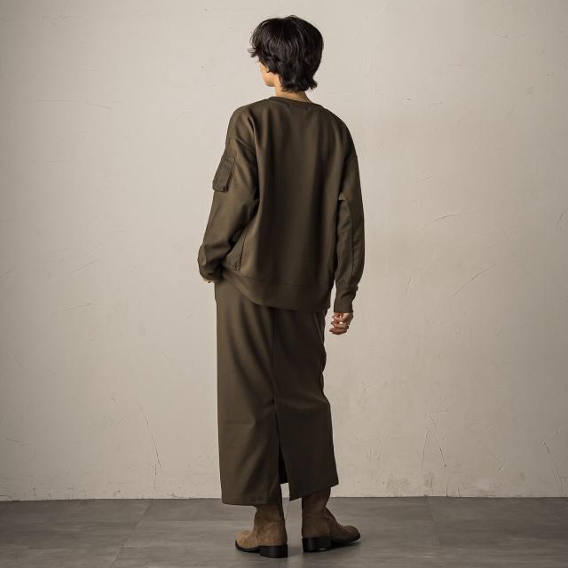 ツイル素材の立体的なワークポケットが映えるスカート・セットアップは、デイリーにちょうどいいお洒落を叶えてくれる。