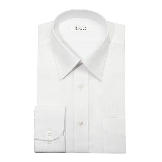 ELLE HOMME ワイシャツ メンズ 長袖 形態安定加工 ゆったり ホワイト ドビー レギュラ【ZED908-200】