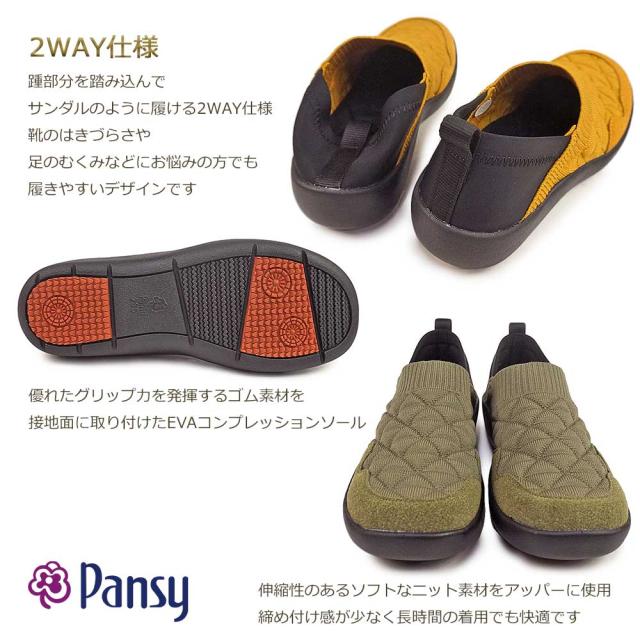 【25秋冬新作】 パンジー シューズ レディース PS1530 軽量 2WAY スニーカー キルティング サンダル 4E 幅広 婦人Pansy