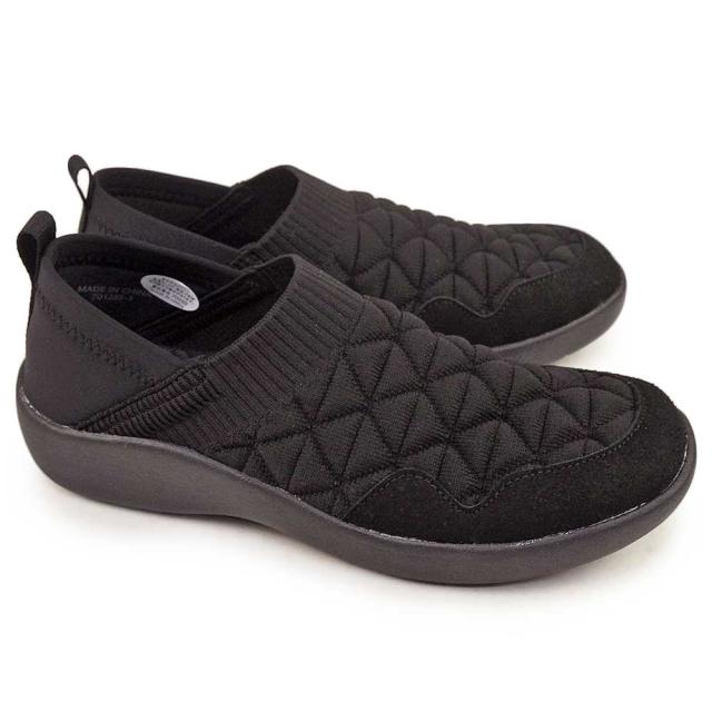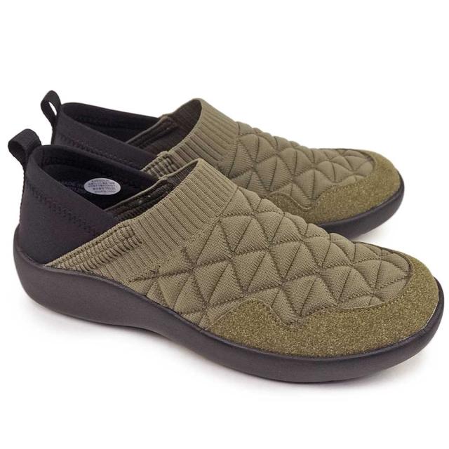 ソフトなニット素材が足に優しくフィットする4E設計のスリッポンシューズ。