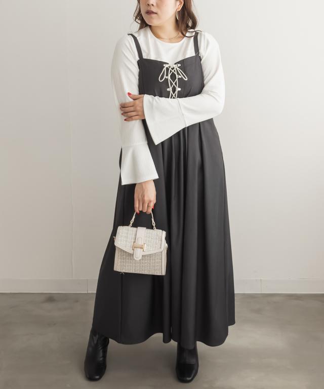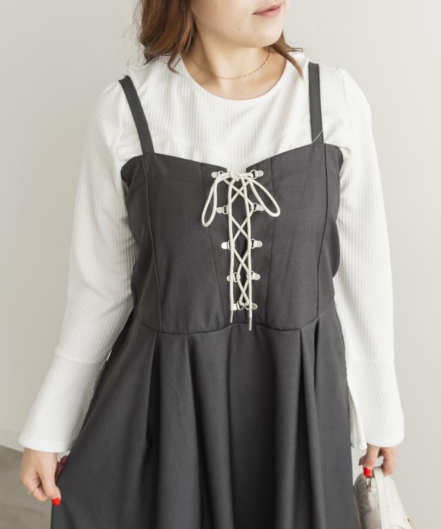 大きいサイズ/レディース/LL/3L/4L/CLETTEオリジナルレースアップジャンスカワンピース