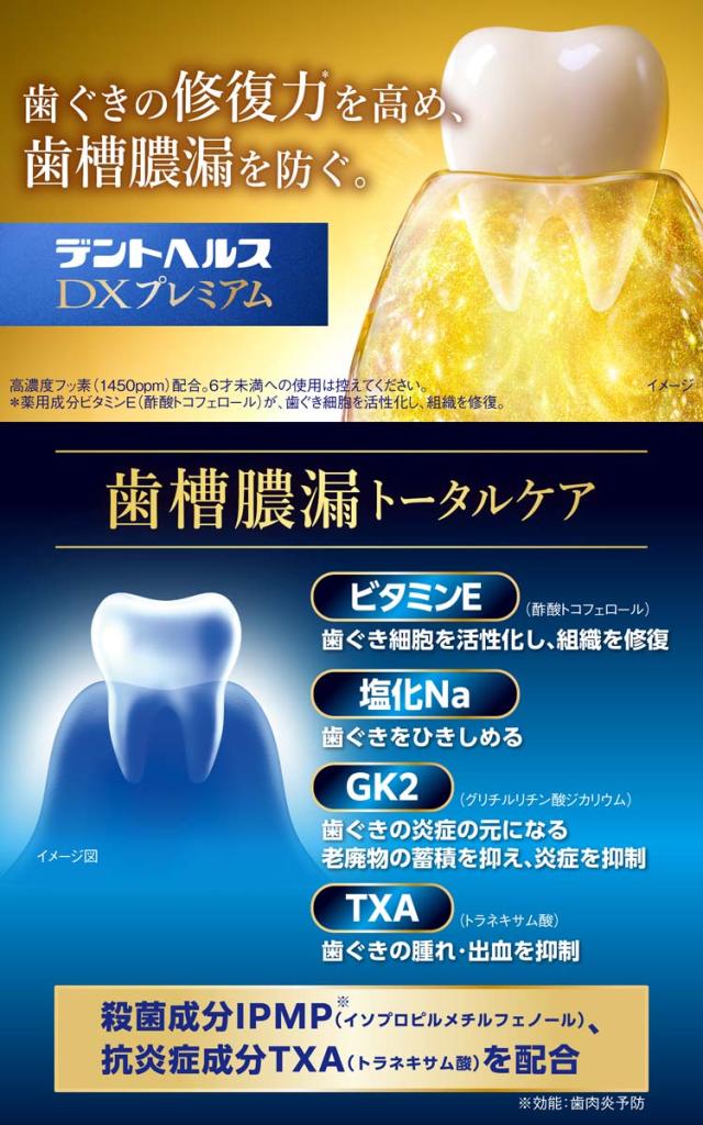 【デントヘルス薬用ハミガキDXプレミアムの商品詳細】