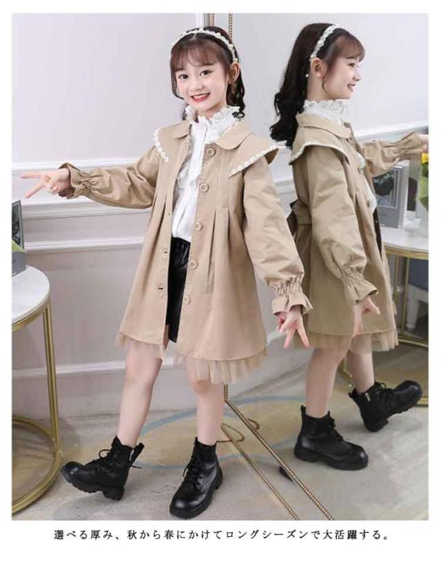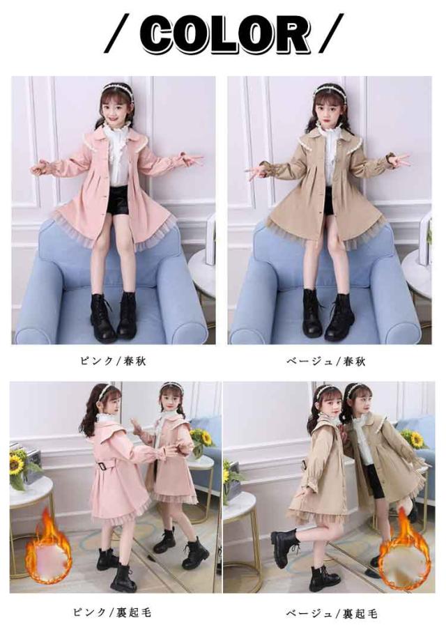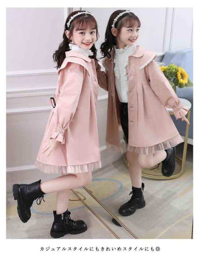 冬 ロング丈 子ども服 キッズ コート 可愛い スプリングコート 裏起毛 春秋 女の子 トレンチコート キッズ キッズコート トップス 子供服 上着 子供コート プリンセス風 かわいい ファッション 春秋 トレンチコート キッズ服 ジュニア 大きいサイズ