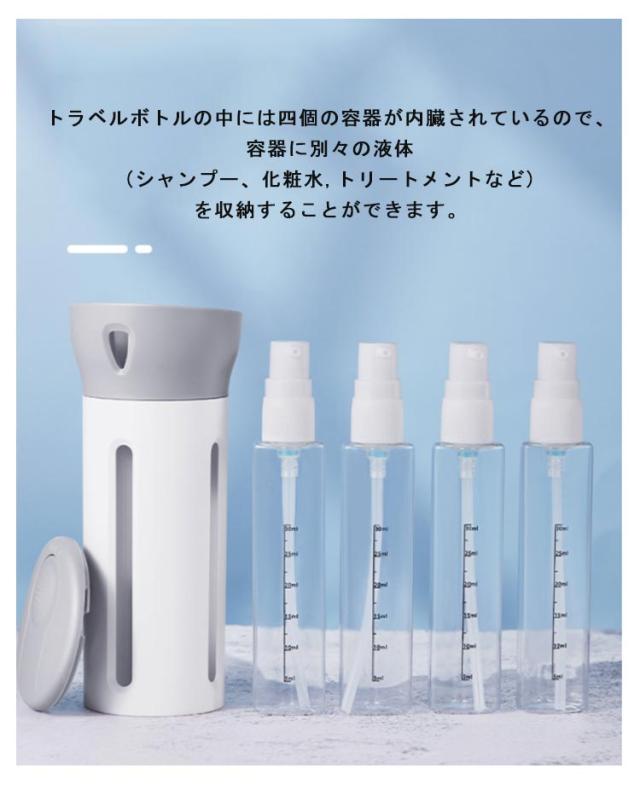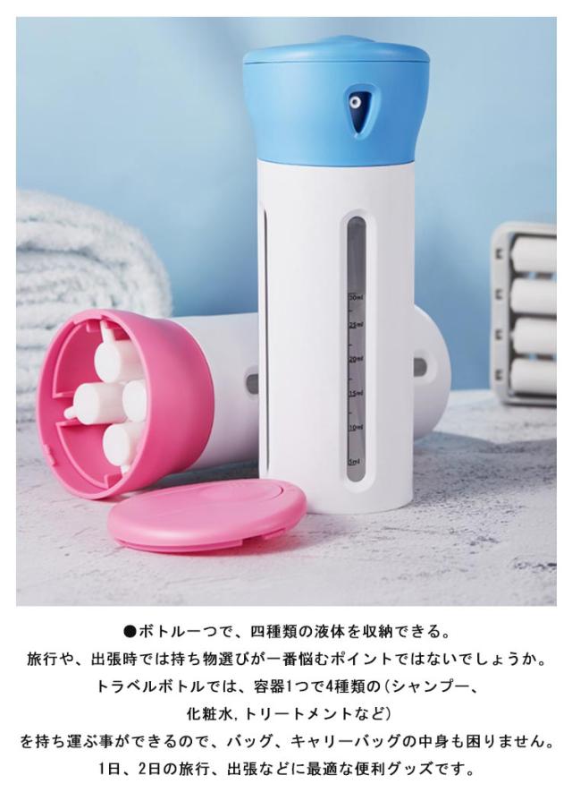 4in1 トラベルボトル 小分け容器 旅行 携帯用 詰め替えボトル 出張用 旅行用 携帯便利 小分けボトル 化粧水用小分け容器 シャンプー容器 収納 ボトル 旅行用 出張 温泉 銭湯 プール 海水浴 液体用空ボトル シャンプー ボディーソープ シャンプー トリートメント 詰替容器