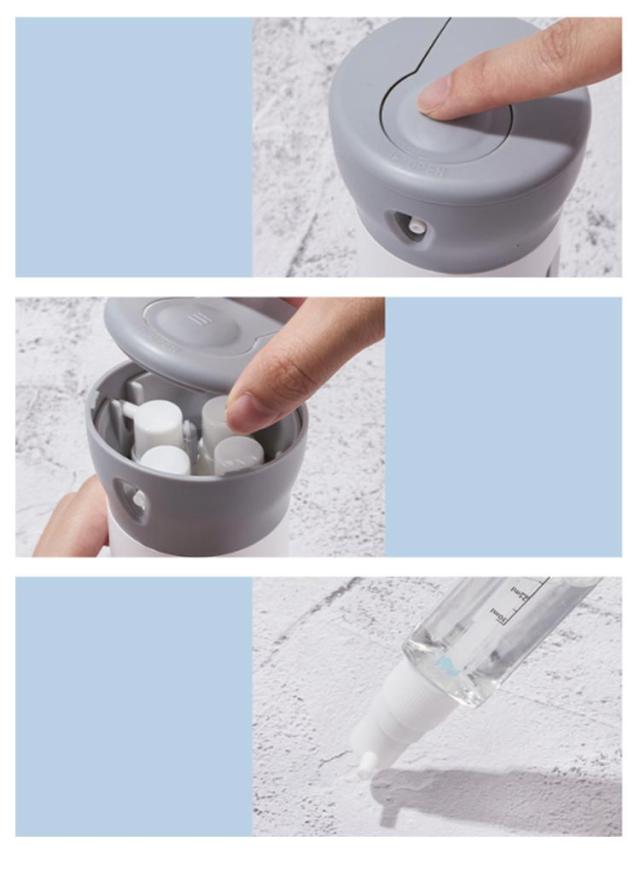 | トラベルボトルはキャンプや、出張、温泉、銭湯、旅行時に大活躍する便利グッズです。 トラベルボトルの中には四個の容器が内臓されているので、容器に別々の液体(シャンプー、化粧水,トリートメントなど)を収納することができます。 ●ボトル一つで、四種類の液体を収納できる。 旅行や、出張時では持ち物選びが一番悩むポイントではないでしょうか。 トラベルボトルでは、容器1つで4種類の(シャンプー、化粧水,トリートメントなど) を持ち運ぶ事ができるので、バッグ、キャリーバッグの中身も困りません。 1日、2日の旅行、出張などに最適な便利グッズです。 ●収納したまま、使用も可能。 トラベルボトルは、収納したまま使用することができますので、 一つ、一つを取り出す必要もなく切り替える事で別々の物を ボトル一つでお使い頂けます。 ●収納物の内容量が一目でわかるデザイン。 内部ボトルの容量が一目でわかるデザインとなっているので、 容量を足したり、入れ替えを行うなどスムーズに行う事ができます。 | |
