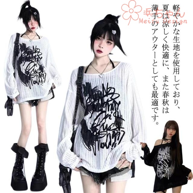 長袖Tシャツ プルーオーバー ゆったり サブカル系 カットソー 長袖Tシャツ レディース 長袖Tシャツ 地雷系 秋 トップス 可愛い 春 大きいサイズ 原宿系