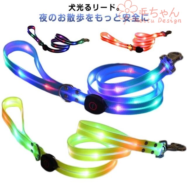 USB充電式 犬用 大型犬 小型犬 中型犬 防水 LEDリード 犬レインボー ペット用リード お散歩ひも 犬用品 お散歩グッズ ペット ドッグリード カラフルリード LEDライト 照明 犬リード 安全リード 夜お散歩 安全 光るリード ペット用品