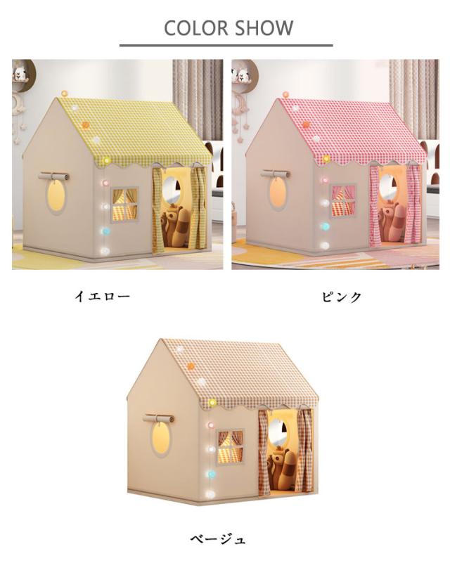 | キッズテント。 【秘密基地 子供】誰もが自分の小さなスペースを必要としています。子供たちに遊んだり寝たりするための秘密基地を与えてください。子供たちは屋内子供用テントにおやつ、おもちゃ、枕、毛布を入れることができます。 【十分な広さと風通しの設計】十分な大きさ、あなたの最大の子供でも立つことができて、快適に子供を収容して、両親も中に座って子供と一緒に遊ぶことができて、しかも広いバンドドアと網状窓を持って、風通しがよくて、両親も子供を監視するのに便利です。 【設置が簡単】テントのセットアッププロセスはシンプルかつ迅速で、面倒な工具や複雑な手順は必要ありません。金属ブラケットは頑丈で耐久性があり、設置がより便利です。 【通気性が良くてムレにくい】通気性の良い素材でお子様も快適に過ごせます,いつでも涼しく、優れた通気性と空気の対流で、お子様は蒸れずに楽しく遊べます,テントは高品質の生地で作られており、安心感があります,頑丈なテントポールは耐久性と安全性を保証します。 【さまざまなシーンに最適】パーティー、ピクニック、裏庭のバーベキュー、公園、遊び場、保育園、学校、カーニバル、お泊まり会などに使用したり、子供部屋にテントとして設置します。 3、4、5、6、7、8歳の男の子または女の子に最適です。 | |