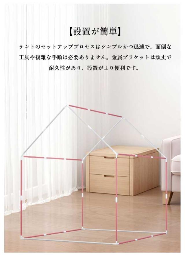 | サイズについての説明 | サイズ:高さ128cm×奥行き105cm×幅120cm 子供用テントのみ (枕、綿球ライトは含まれません) ※サイズ計測には誤差が生じます。 |