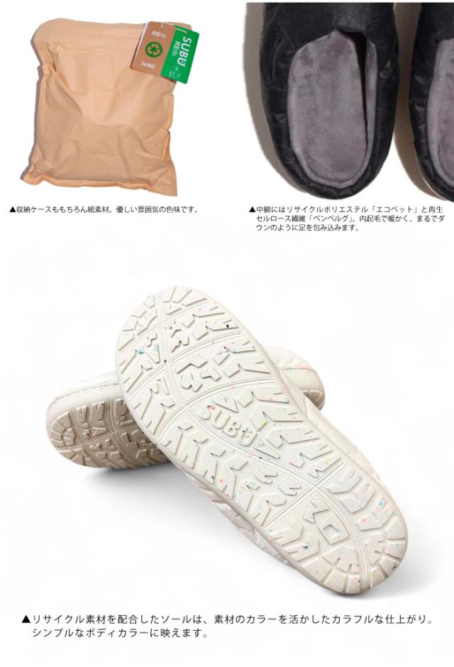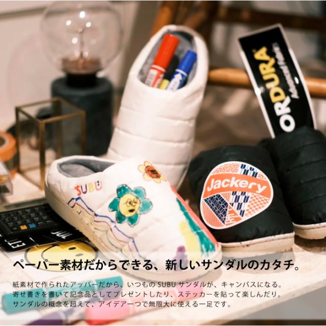SUBU RE:PAPER スブ リペーパー サスティナブル 紙素材 中綿サンダル 専用バッグ付属 お絵描き プレゼント 防寒 内起毛 ルームシューズ アウトドア オフィス フライト 買い物 無地 プレーン メンズ レディース 靴 ウィンターシューズ SBRPA
