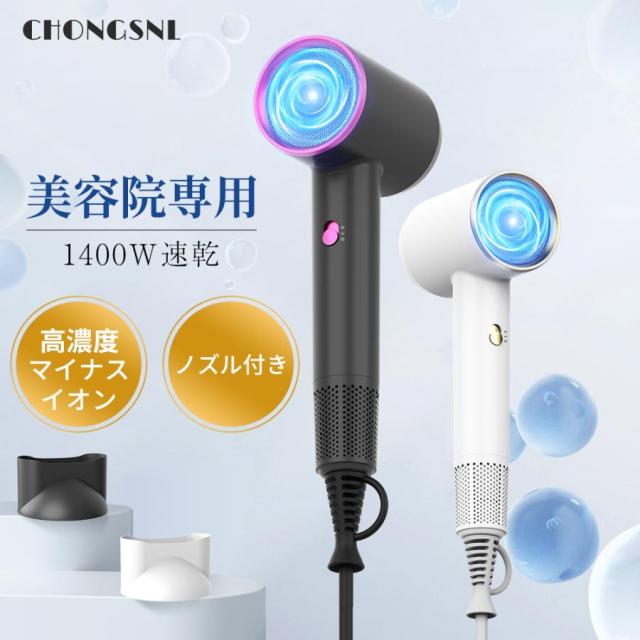 ドライヤー 大風量 速乾 高速ドライヤー ヘアドライヤー 1400W高速 高濃度マイナスイオン 冷熱風 軽音 過熱保護 静電気除去 低騒音 省エネ