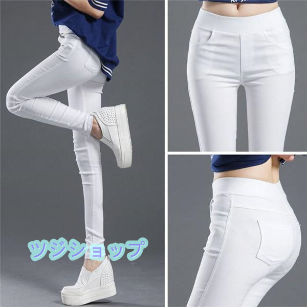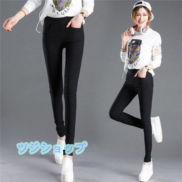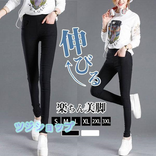 レギンスパンツ レディース スキニーパンツ ウエストゴム ダメージ ストレッチパンツ ボトムス 美脚 伸びる 楽ちん ハイウエスト 無地 美尻