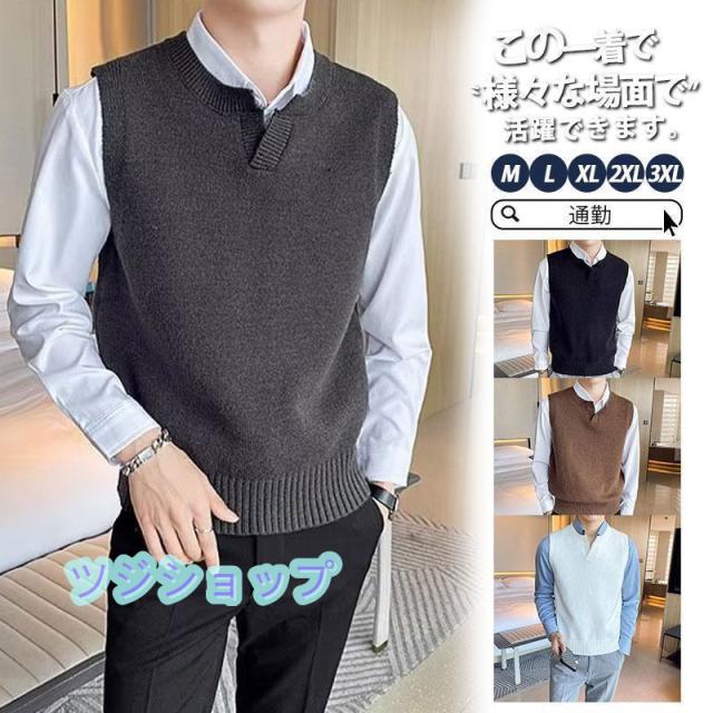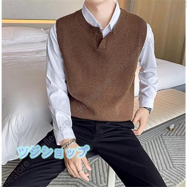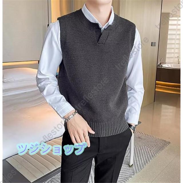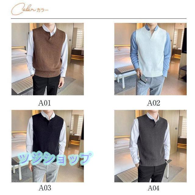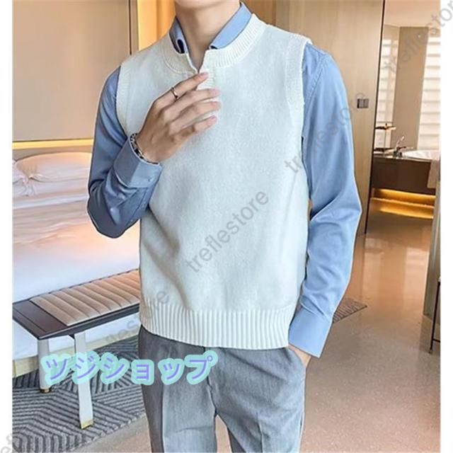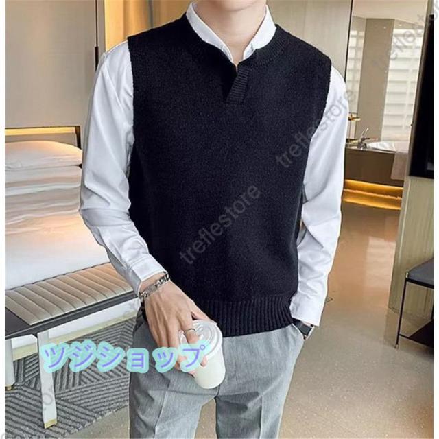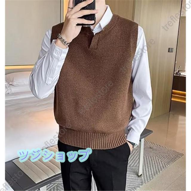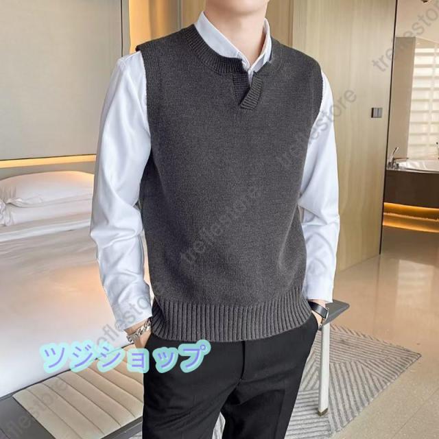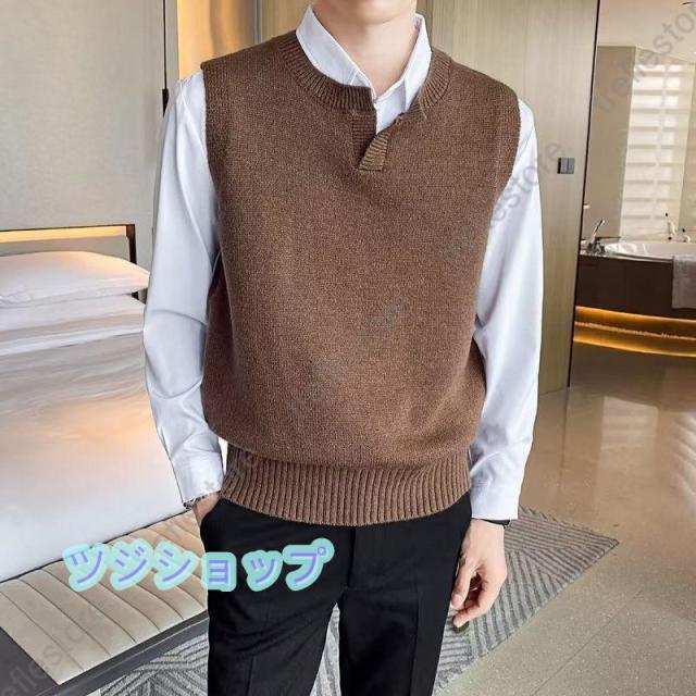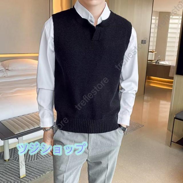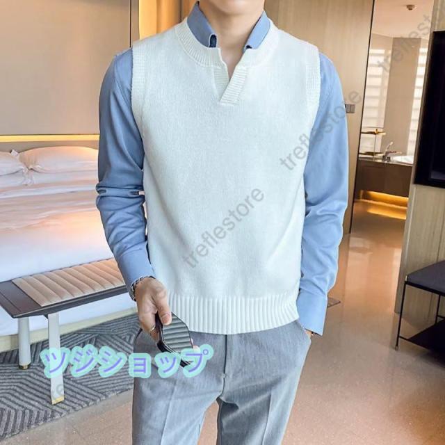 ニットベスト メンズ 秋冬 春夏 プルオーバー セーター チョッキ ゴルフウェア ゴルフベスト カジュアル ジレ シンプル 重ね着 秋物 ビジネス