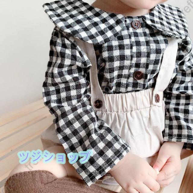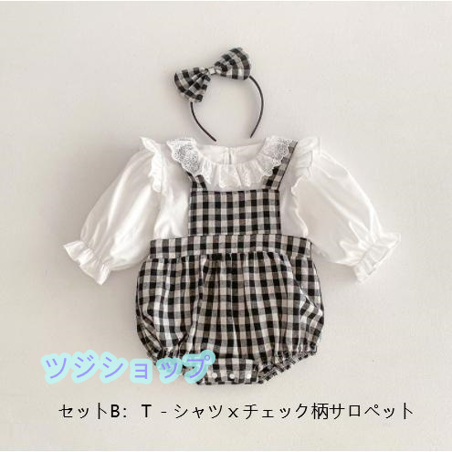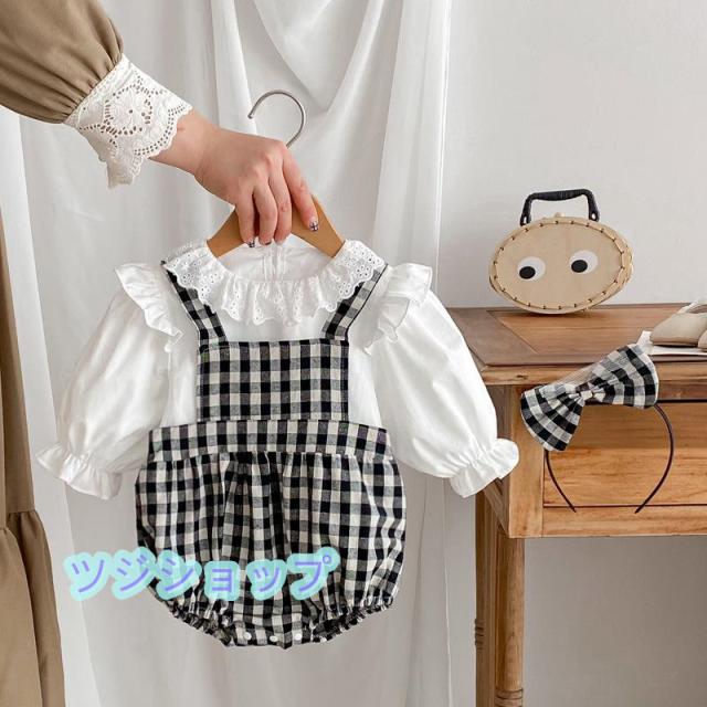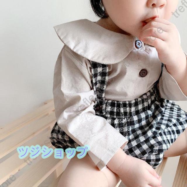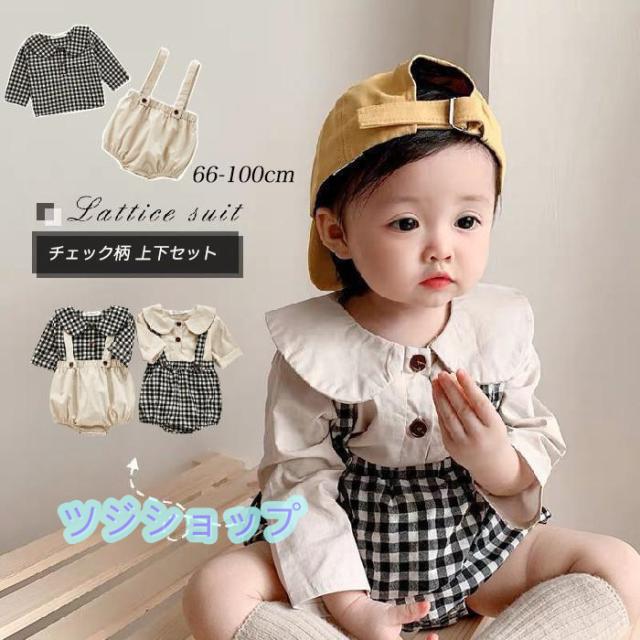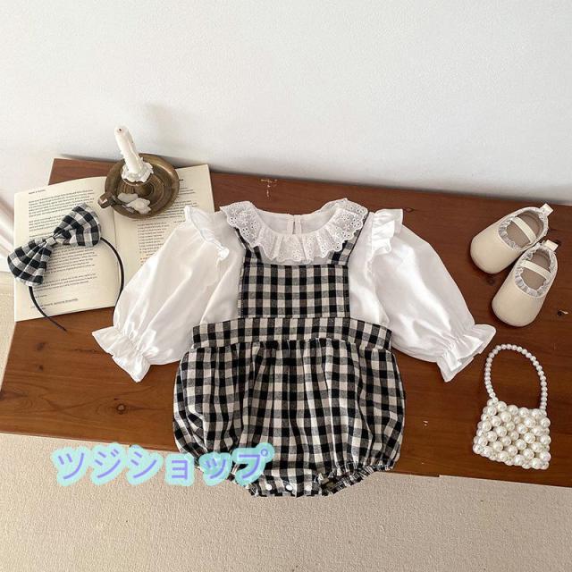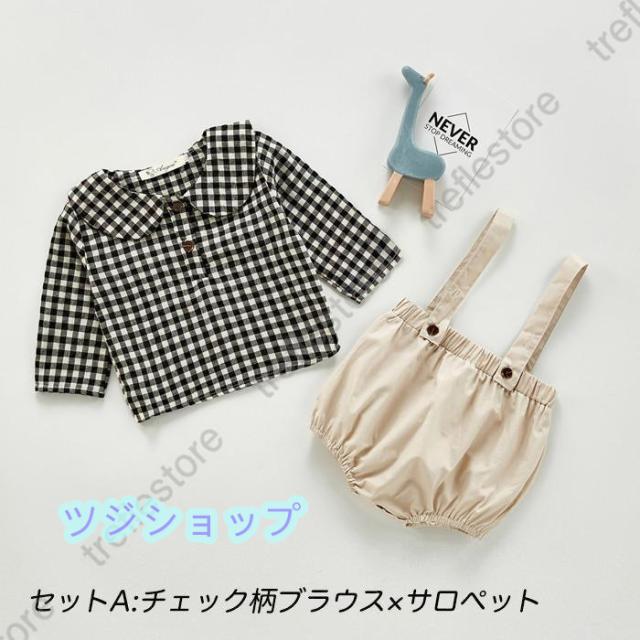 ベビー服 子供服 女の子 上下セット サロペット×ブラウス セットアップ チェック柄ギンガムチェック かぼちゃパンツシャツ赤ちゃんトップス春秋誕生日お宮参り