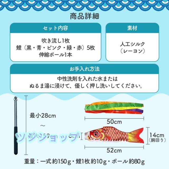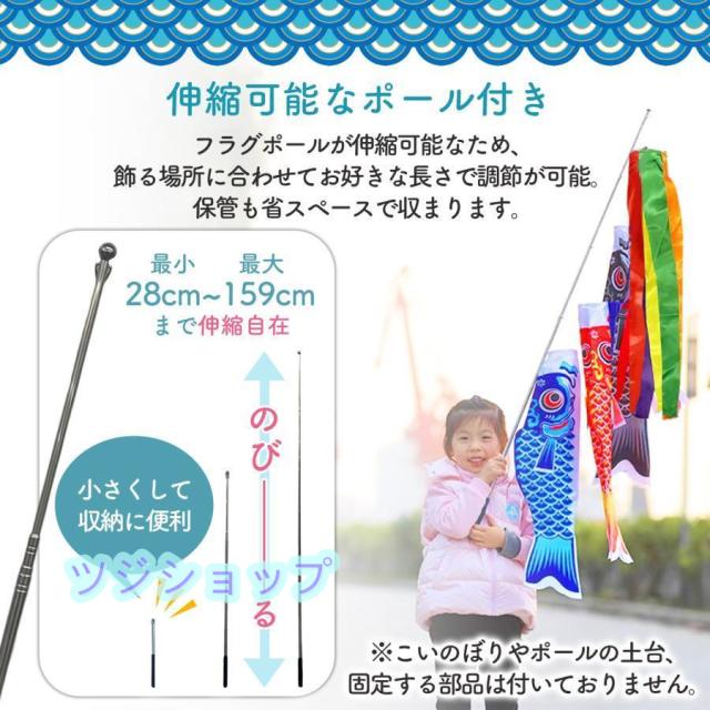 鯉のぼり ベランダ用 小さめ ミニサイズ 室内用 5色セット ポール付き 写真撮影 記念撮影 月齢フォト 吹き流し 端午の節句 飾り 初節句 男の子 お祝い