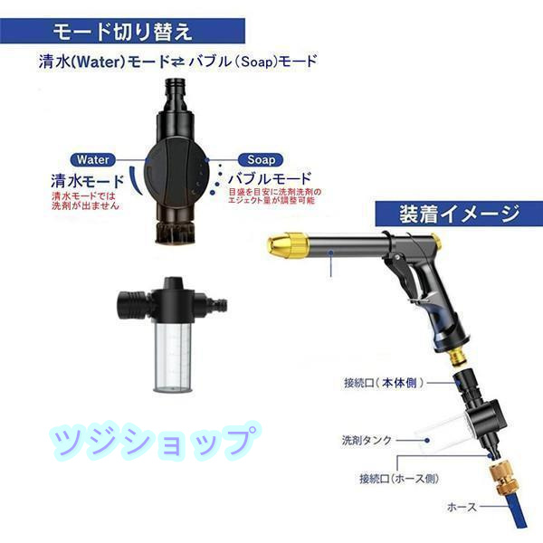 セット内容: 本体、ホース、ジョイント、洗剤エジェクター、ノズル、ホース
