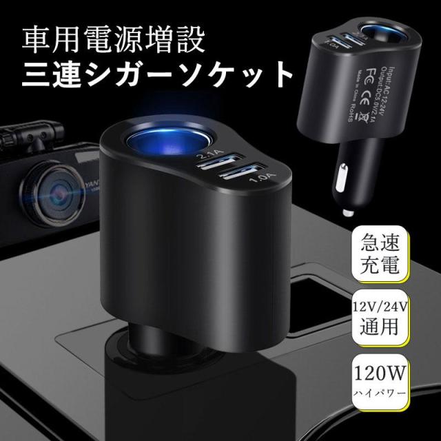 【キーワード】シガーソケット 電源 増設 カーチャージャー 車 充電器 usb 3連 3口 プラグ 変換 シガーチャージャー iphone 車載 車用 充電 急速 24v 12v 対応 乗用車 トラック 大型車 車載充電器 3ポート 3台同時に充電 スマホ スマートフォン スマート充電 USBポート付