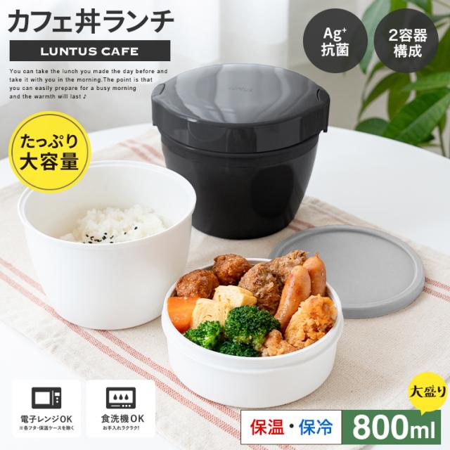 いつでもどこでも温かご飯が美味しく食べられるカフェ丼ランチ。ステンレス真空断熱構造で、保温・保冷で、中身の温度を保ちます。丼タイプなので、カレーや親子丼、パスタなど、お弁当のバリエーションが広がります。保冷もできるから、暑い夏にも冷製メニューにも。丼ぶり形状で、お子様でも食べやすく、おかずも詰めやすいので、お母さんも大助かり。食洗器にも対応、忙しい家事の短縮にも。レンジで、温め直しもできます。たっぷり食べられる大盛りサイズ800mlで、育ち盛りのお子さんに最適。