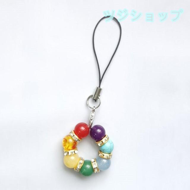 天然石 パワーストーン 七色お守り リング形 携帯 ストラップ 七色厄除け 開運グッズ 厄年 贈り物 プレゼント 祈り 福 守り