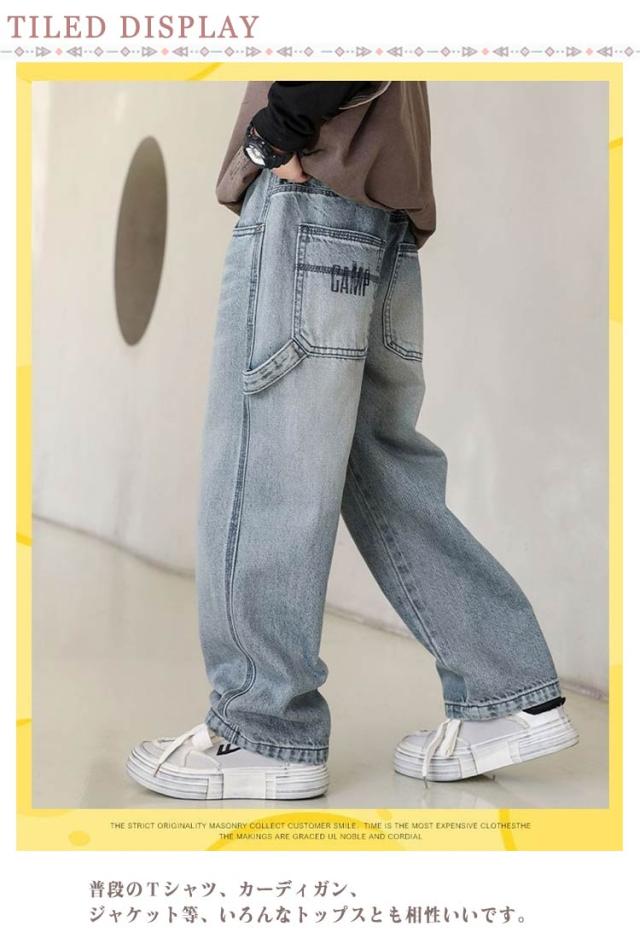 普段着 男の子 ワイドパンツ 子供 男の子 ジーンズ ズボン ロングパンツ ダンス衣装 ボトムス ウエストゴム ボーイズ 通園 通学 ストリート ゆったり ダンス衣装