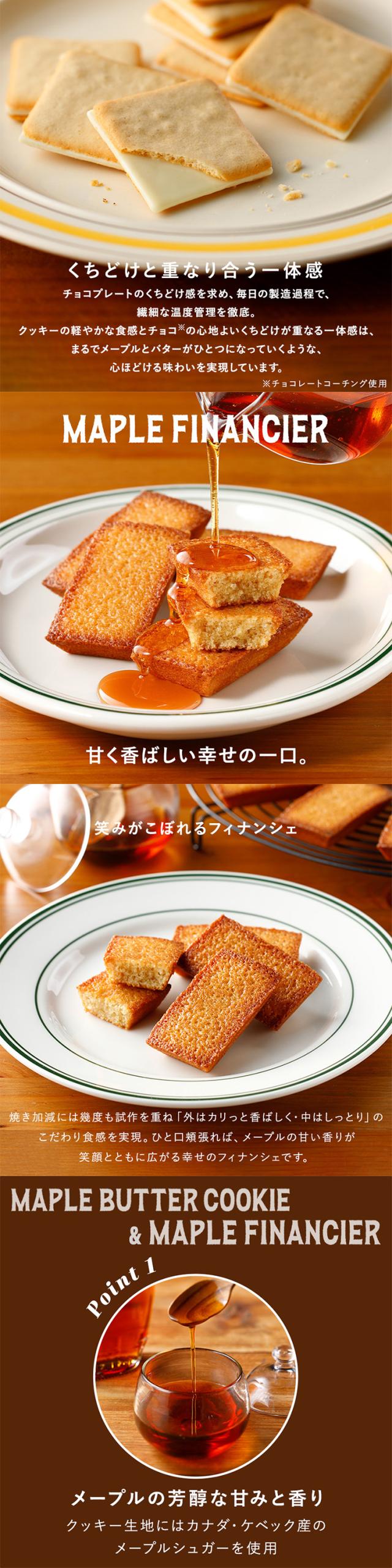 人気No.1のメープルバタークッキーと、メープルフィナンシェの詰合せアソートギフトセット限定のオリジナルデザインでご用意。クッキーとフィナンシェの両方をこの一箱で楽しめるおすすめのセットです。