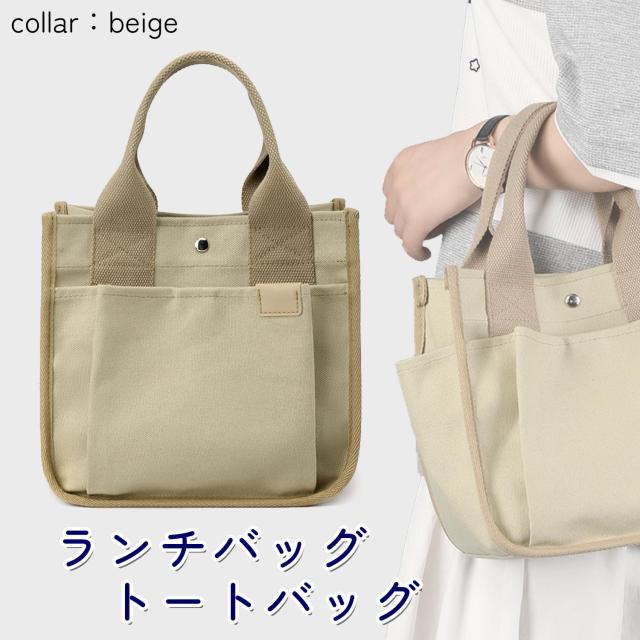トートバッグ 帆布 ランチバッグ 小さめ ベージュ レディース ミニバッグ 軽量 自立 通勤 通学 おしゃれ 水筒 お弁当 (管理S) 送料無料