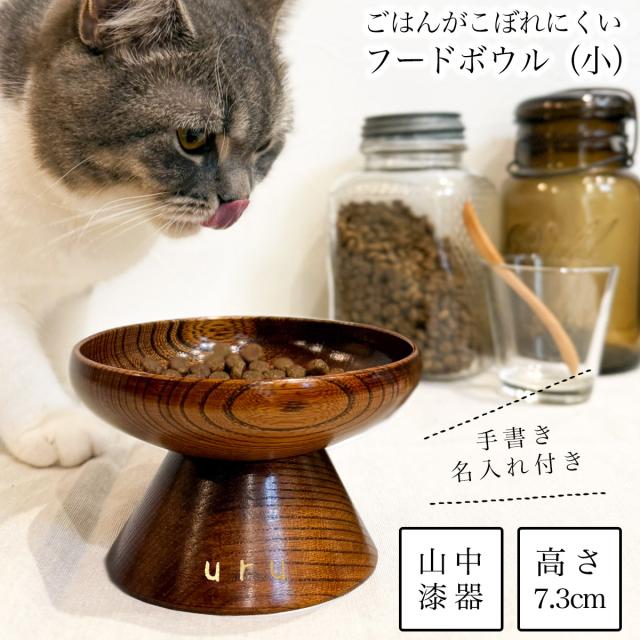ペット用 木製フードボウル すり漆 小 手書き名入れ付き ( 退職祝い 定年 猫用 犬用 ネコ 猫 ペット用品 山中漆器 )