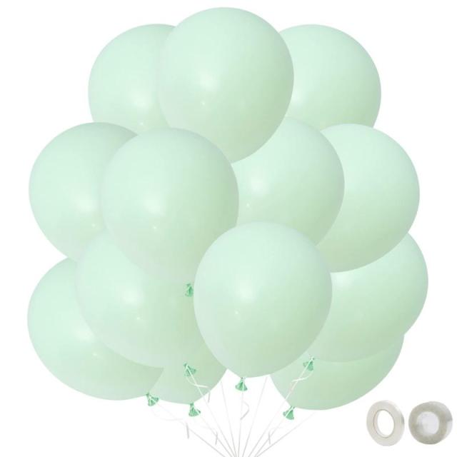 風船カラー:グリーン(マカロンカラー)。内容物 :60個入り(粘着シール1枚、リボン1巻、バルーンチェーン1巻付き)。サイズ:10インチ(25cm)。ヘリウムガス、空気用に使用できます。ご注意:バルーン表面には、膨らませやすくするための微量の粉が付いています。使用前に軽く払い落としても問題ありません
