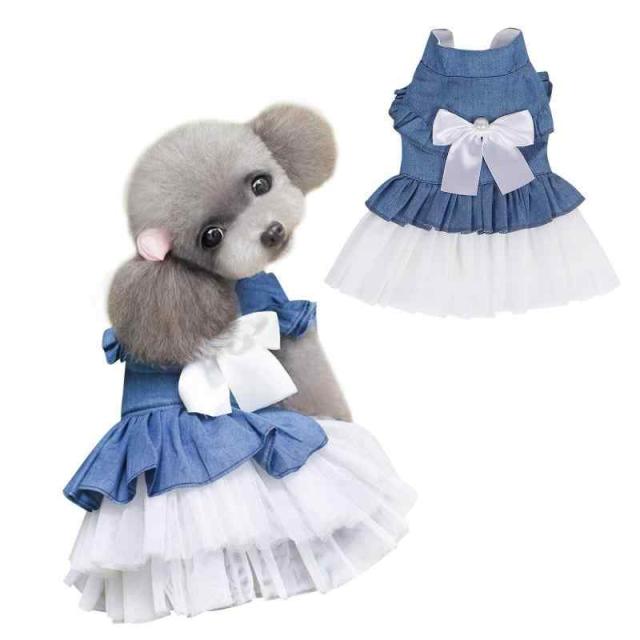 Jimjis 犬服 ワンピース 春夏 通気 お姫様 ドレス スカート 袖なし 薄手 軽量 小型犬 猫 ペット服 犬の服 猫の服 小型犬 中型犬 洋服 脱毛保護 (ホワイト, M)