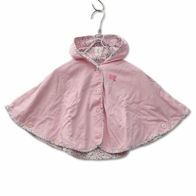 【中古】ミキハウス mikihouse ベビー おでかけ ポンチョ ピンク × 花柄 リバーシブル キッズ