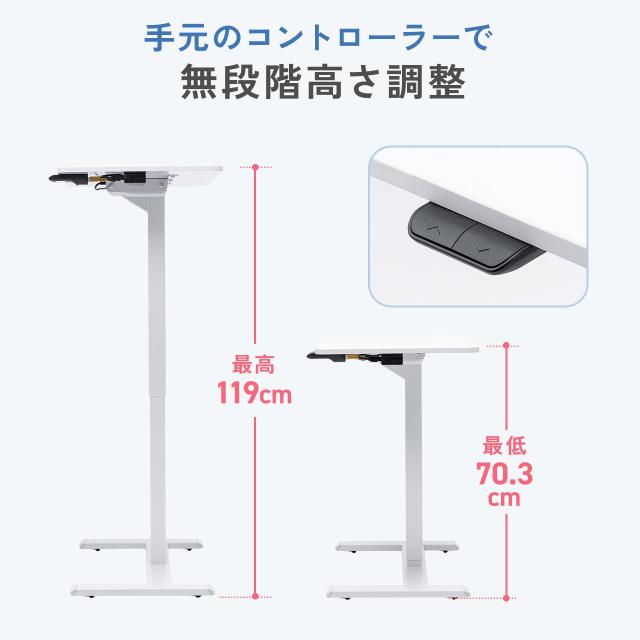 ●モバイルバッテリーで電動昇降することが出来るデスクです。●給電用の電源ケーブルを繋がず使用することが出来るので好きな場所に移動することが出来ます。