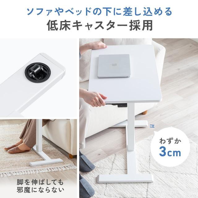 スタンディングデスク 電動昇降デスク ソファサイドテーブル 低床キャスター モバイルバッテリー稼働 軽量[100-ERD051]