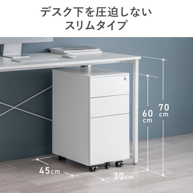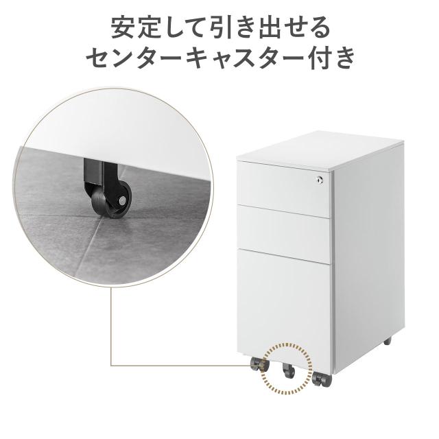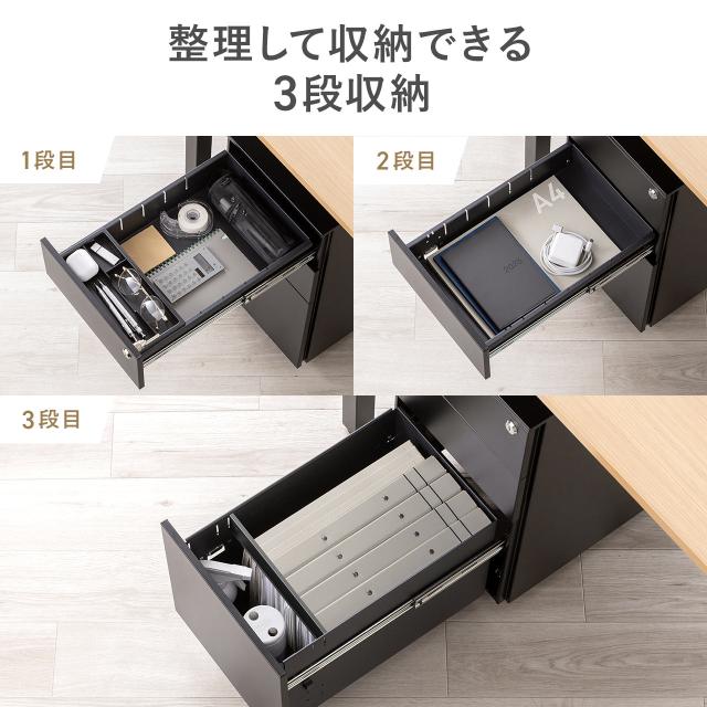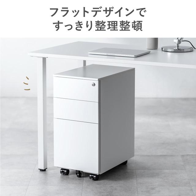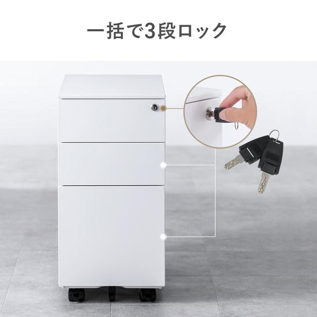 ●書類や小物が整理しやすい3段タイプのスリムキャビネットです。●前面フラットなデザインなので、スタイリッシュに設置ができます。